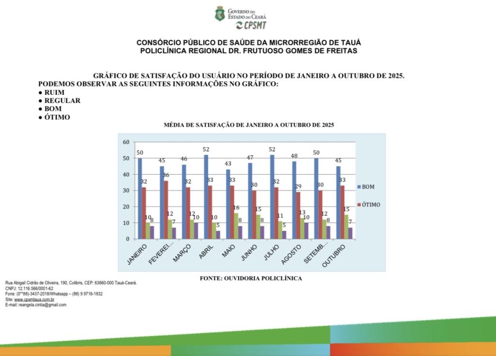 A satisfação do usuário é a avaliação que uma pessoa faz de um serviço ou produto com base em suas expectativas prévias. Ela é um indicador fundamental para medir a qualidade do atendimento, a eficácia dos processos e a percepção dos usuários da Policlínica Regional Dr. Frutuoso Gomes de Freitas.